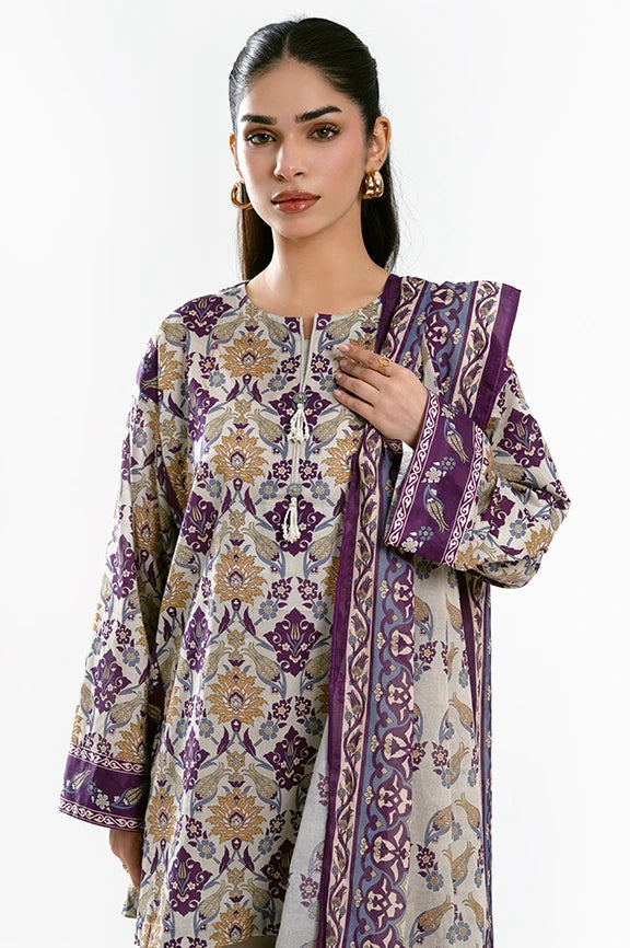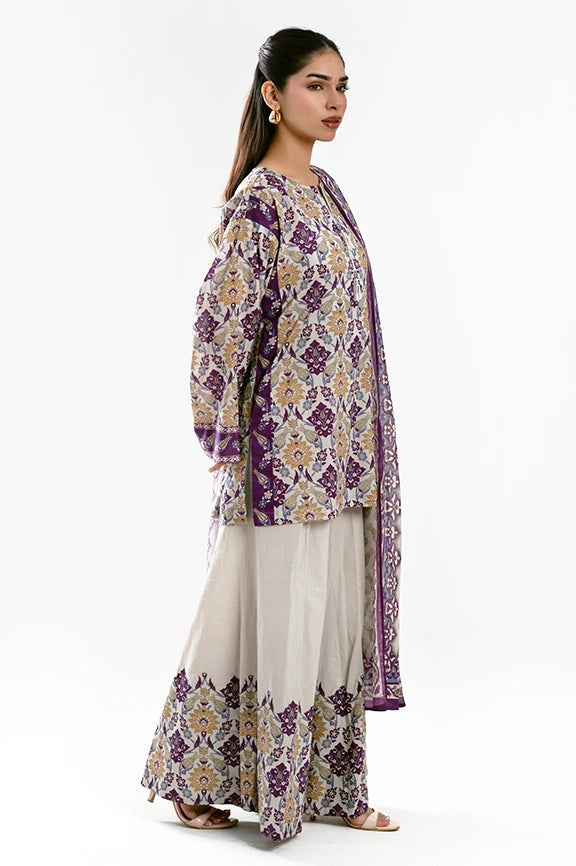A perfect pick for effortless elegance, this 3-piece unstitched suit features a soft beige base adorned with delicate prints. Crafted from breathable fabric, it includes a printed shirt, matching trousers, and a coordinating dupatta — ideal for summer wear. Style it your way for a look that’s both timeless and graceful.